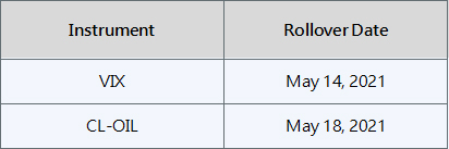 • Positions that are open on the expiration date will be adjusted via a rollover charge or credit to reflect the price difference between the expiring and new contracts.