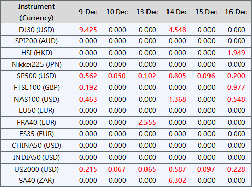 Please be advised that the dividends of the following index CFDs will be adjusted by upcoming ex-dividend dates. The comment for trading index CFDs will be in the following format “Div&<Product Name>&<Net Volume>” which show in the balance after the close of the day before the dividend payment date.