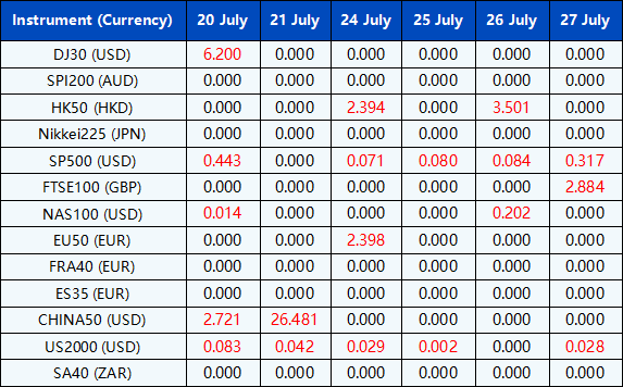 Please be advised that the dividends of the following index CFDs will be adjusted by upcoming ex-dividend dates. The comment for trading index CFDs will be in the following format “Div&<Product Name>&<Net Volume>” which show in the balance after the close of the day before the dividend payment date.