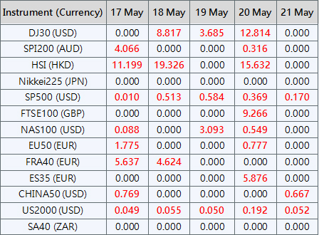 Please be advised that the dividends of the following index CFDs will be adjusted by upcoming ex-dividend dates. The comment for trading index CFDs will be in the following format “Div&<Product Name>&<Net Volume>” which show in the balance after the close of the day before the dividend payment date.