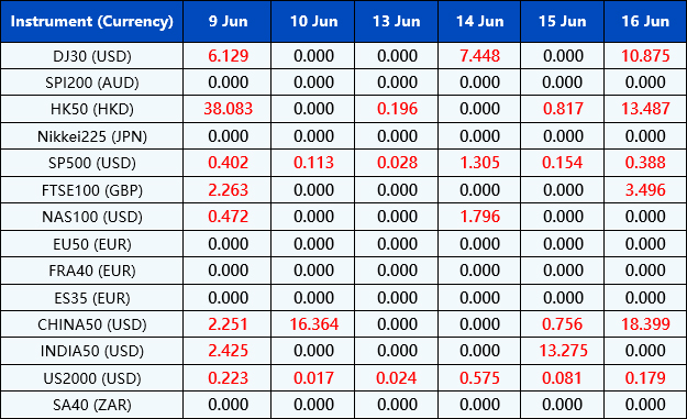 Please be advised that the dividends of the following index CFDs will be adjusted by upcoming ex-dividend dates. The comment for trading index CFDs will be in the following format “Div& <Product Name>&<Net Volume>”which show in the balance after the close of the day before the dividend payment date.