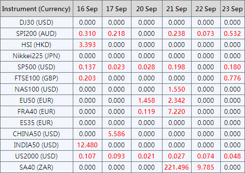 Please be advised that the dividends of the following index CFDs will be adjusted by upcoming ex-dividend dates. The comment for trading index CFDs will be in the following format “Div&<Product Name>&<Net Volume>” which show in the balance after the close of the day before the dividend payment date.