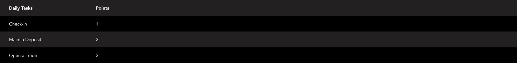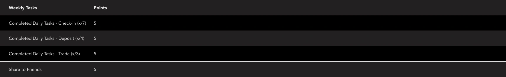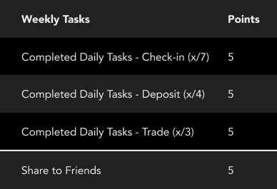 • b) By completing the following daily and weekly tasks, clients can receive the corresponding Points:
