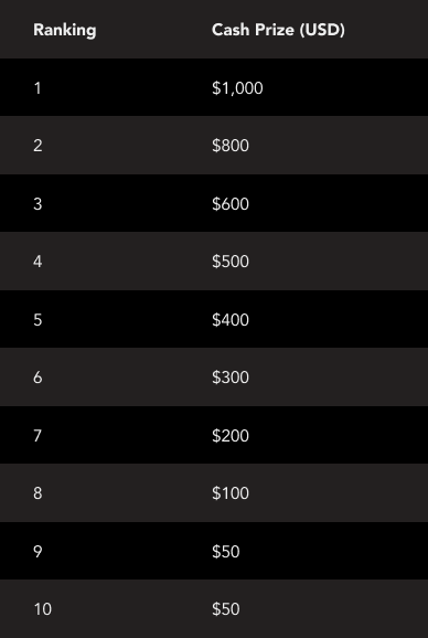 • b) Participants will be ranked according to the points received from In-App Activities 2, 3 & 4. The TOP 10 winners will receive additional cash and a PU Prime x AFA Merchandise Bundle. Refer to the table below for details on each accomplishment.