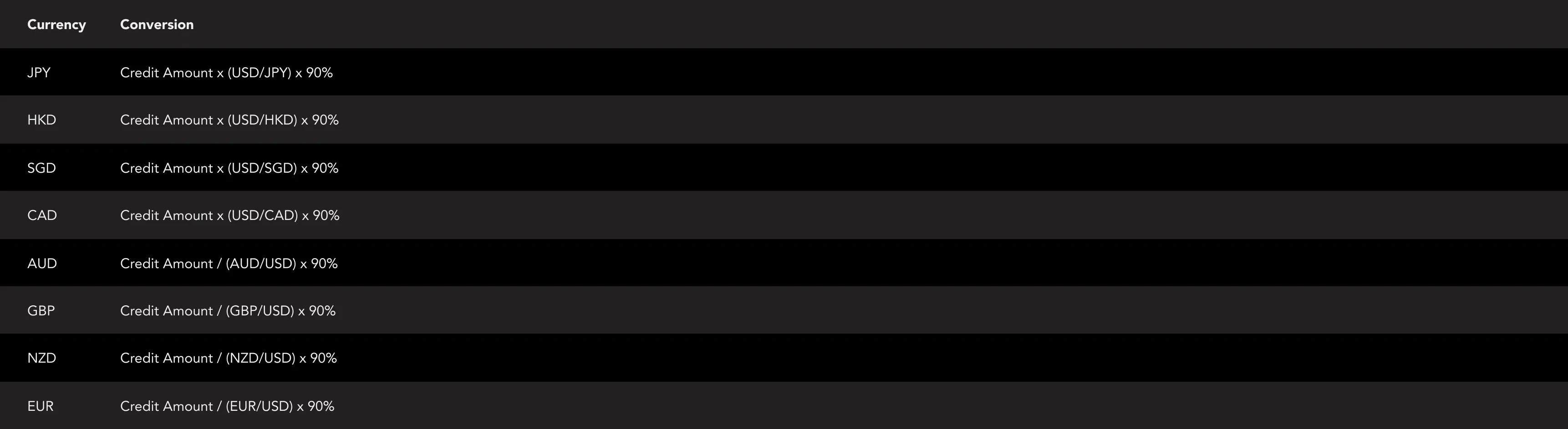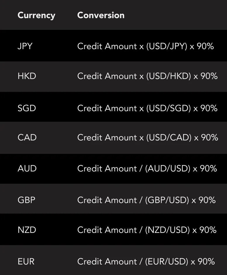 • c) Credit bonus will be credited to the client’s account within 24 working hours after redeeming the voucher. If the client’s account is not denominated in USD, we will convert the credit amount using the following method: